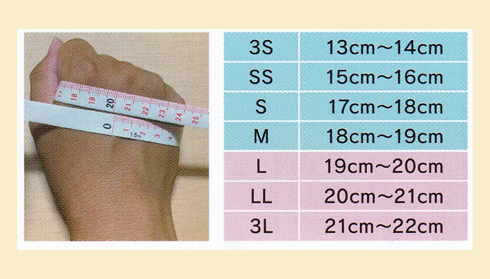 手のサイズによって細やかなサイズ調整が可能です。